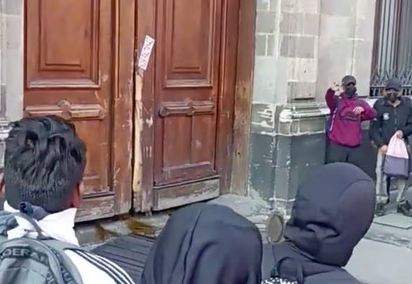 Tras derribar la puerta con una camioneta de CFE, los normalistas ingresaron a Palacio Nacional.
