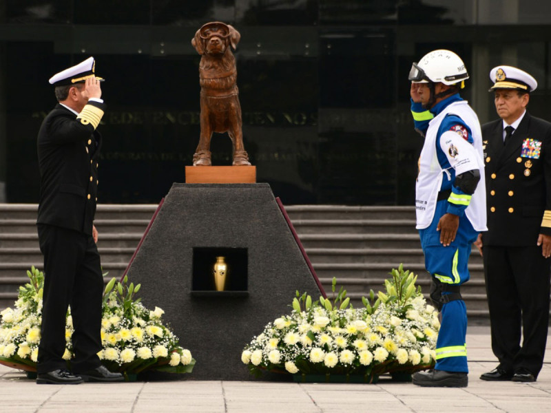 En el Patio de Honor se proyectó un video narrando la trayectoria de Frida, desde cachorrita hasta su última aparición en público. Acto seguido, el secretario de Marina colocó la urna con las cenizas de la perrita rescatista bajo su estatua, frente a la cual se le ofrendó un ramo de flores.
