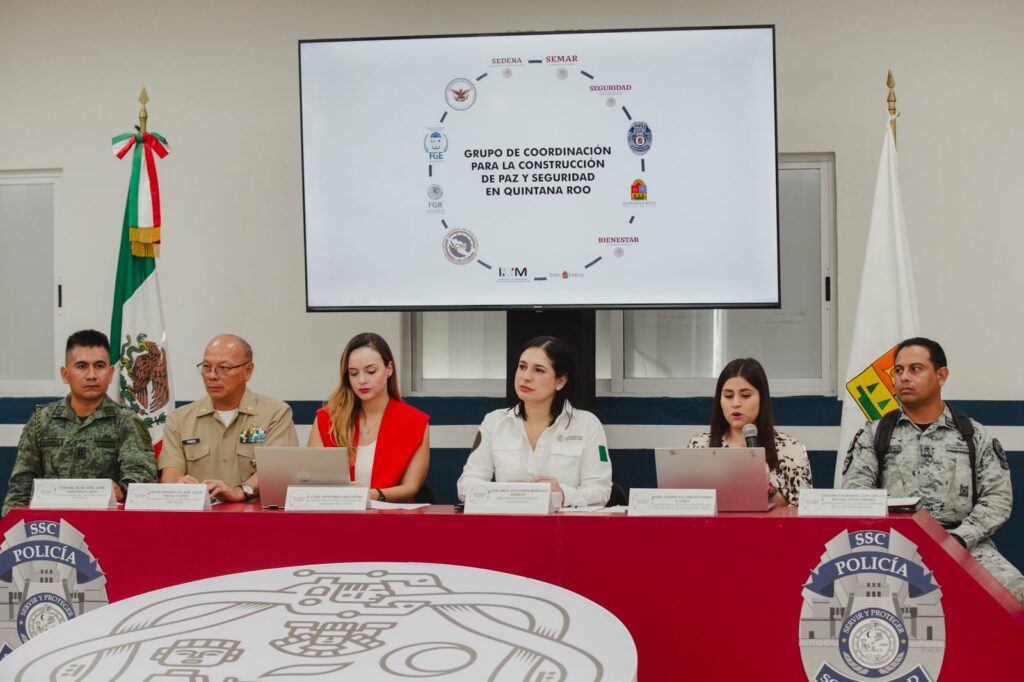 A la reunión también asistieron Estefanía Caro Farah, secretaria Técnica estatal en Quintana Roo; Karen Alejandra Román Flores, secretaria técnica de la Coordinación Regional para la Construcción de Paz y Seguridad de Solidaridad; el vicealmirante C. G D. E. M. Jesús Pineda Flores, comandante de la Décimo Quinta Zona Naval; el teniente de Infantería Francisco Ramírez Pascual, en representación del 64 Batallón de Infantería, y el segundo subinspector Carlos Arturo Jesús Jiménez, comandante de la 375/a compañía de la Guardia Nacional, así como representantes de instituciones de seguridad de los tres órdenes de gobierno. Texto y Fotos: Tomado del boletín