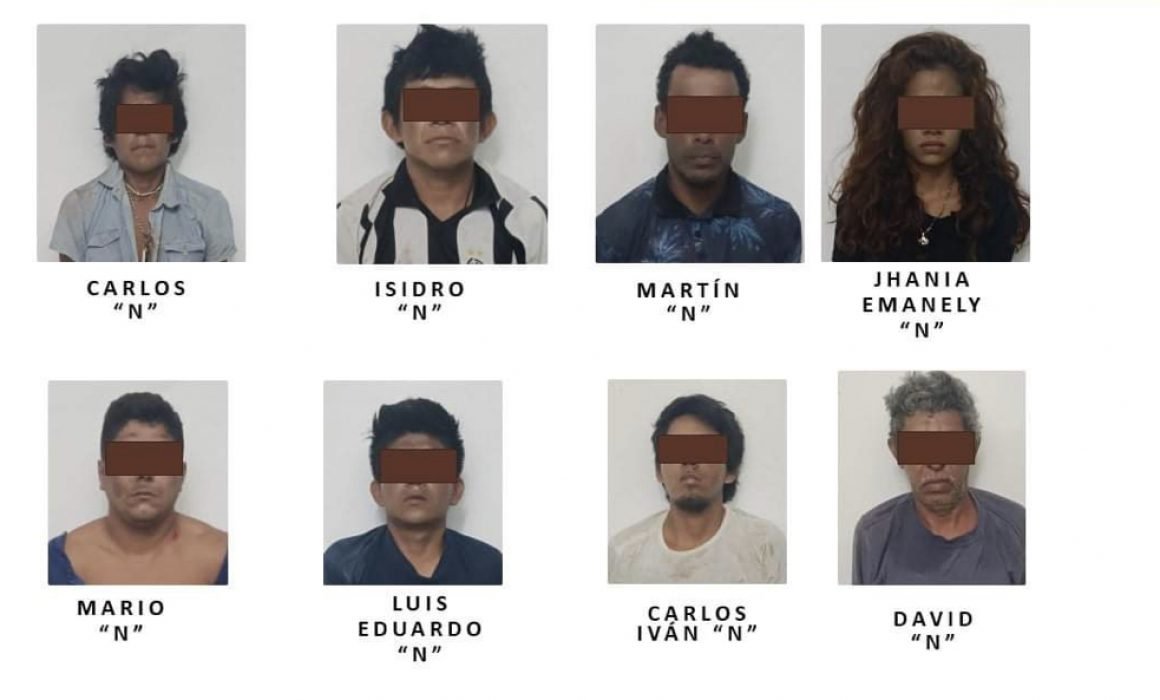 Los elementos policíacos lograron la detención de Mario N., Martín N., David N., Carlos Iván N., Luis Eduardo N., Jhania Emanely N., Isidoro N. y Carlos N., con estricto respeto al debido proceso y a sus derechos humanos.
