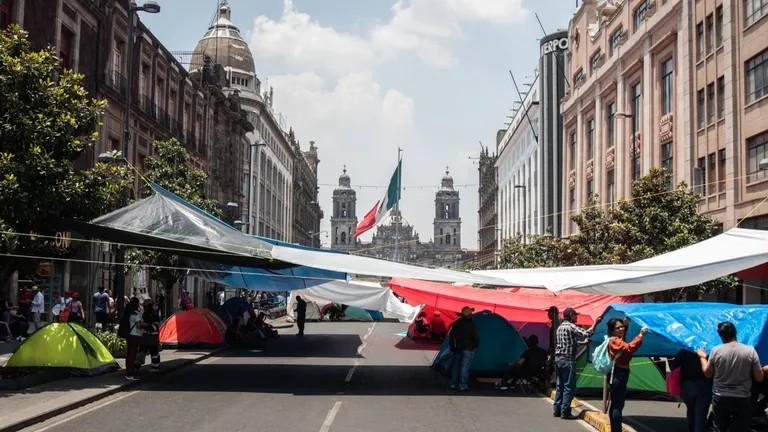Los maestros mantienen un plantón en el Centro Histórico de la Ciudad de México en los últimos 13 días y realizan diversas marchas y bloqueos como medida de presión y resistencia exigiendo la abrogación de la Ley del ISSSTE 2007 y un nuevo sistema de pensiones y jubilaciones justo.