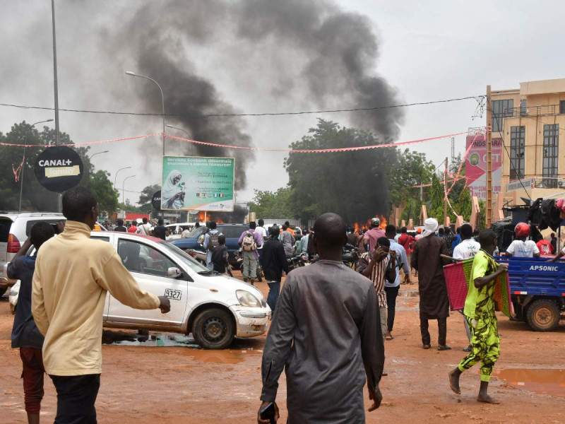 Una de las manifestaciones tuvo lugar en Niamey, la capital, cerca de la Asamblea Nacional, donde una multitud salpicada de banderas rusas, gritaba: “¡Abajo Francia, viva Rusia!”. Paralelamente, un grupo de jóvenes acudieron a la sede del Partido Nigerino para la Democracia y el Socialismo (PNDS, oficialismo), a pocos kilómetros de la manifestación, donde incendiaron coches.