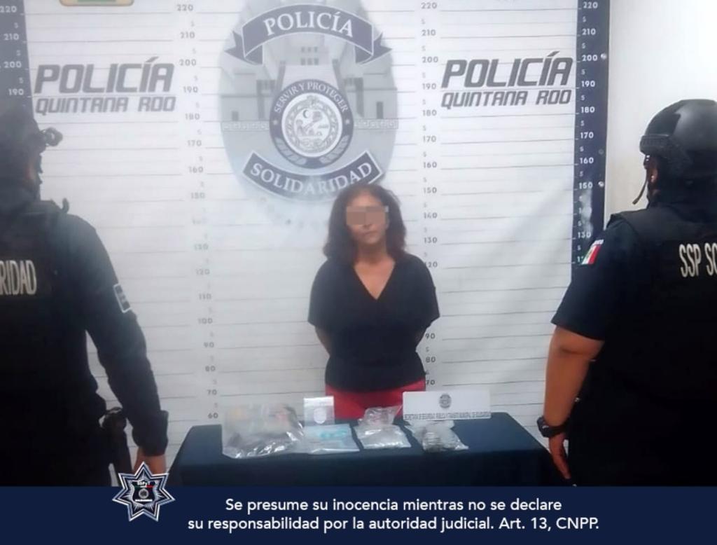 Por su parte, oficiales de la Policía Preventiva aseguraron a Alicia “N” de 53 años, originaria de Cozumel, quien tenía en su posesión cinco envoltorios con marihuana, 10 con cristal, cinco con polvo blanco al parecer cocaína, dos con el posible narcótico conocido como piedra y dos con una sustancia a determinar.