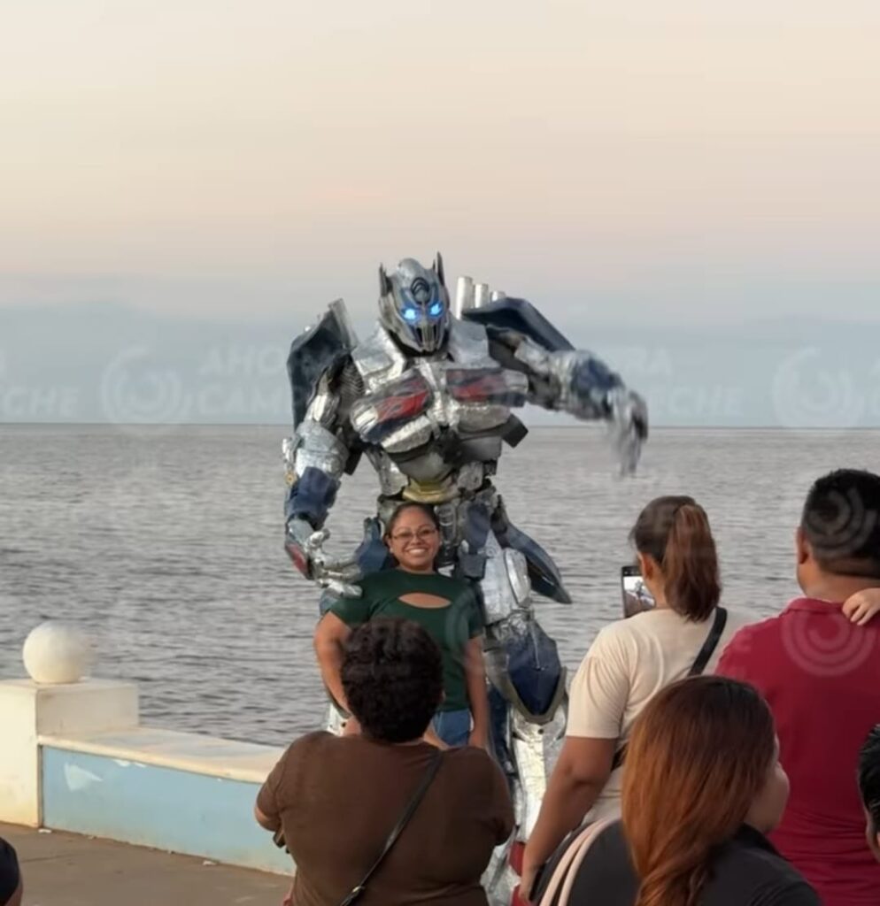 Este martes el famoso transformes, estuvo en el Malecón de Campeche durante casi tres horas, conviviendo con la “raza humana”.