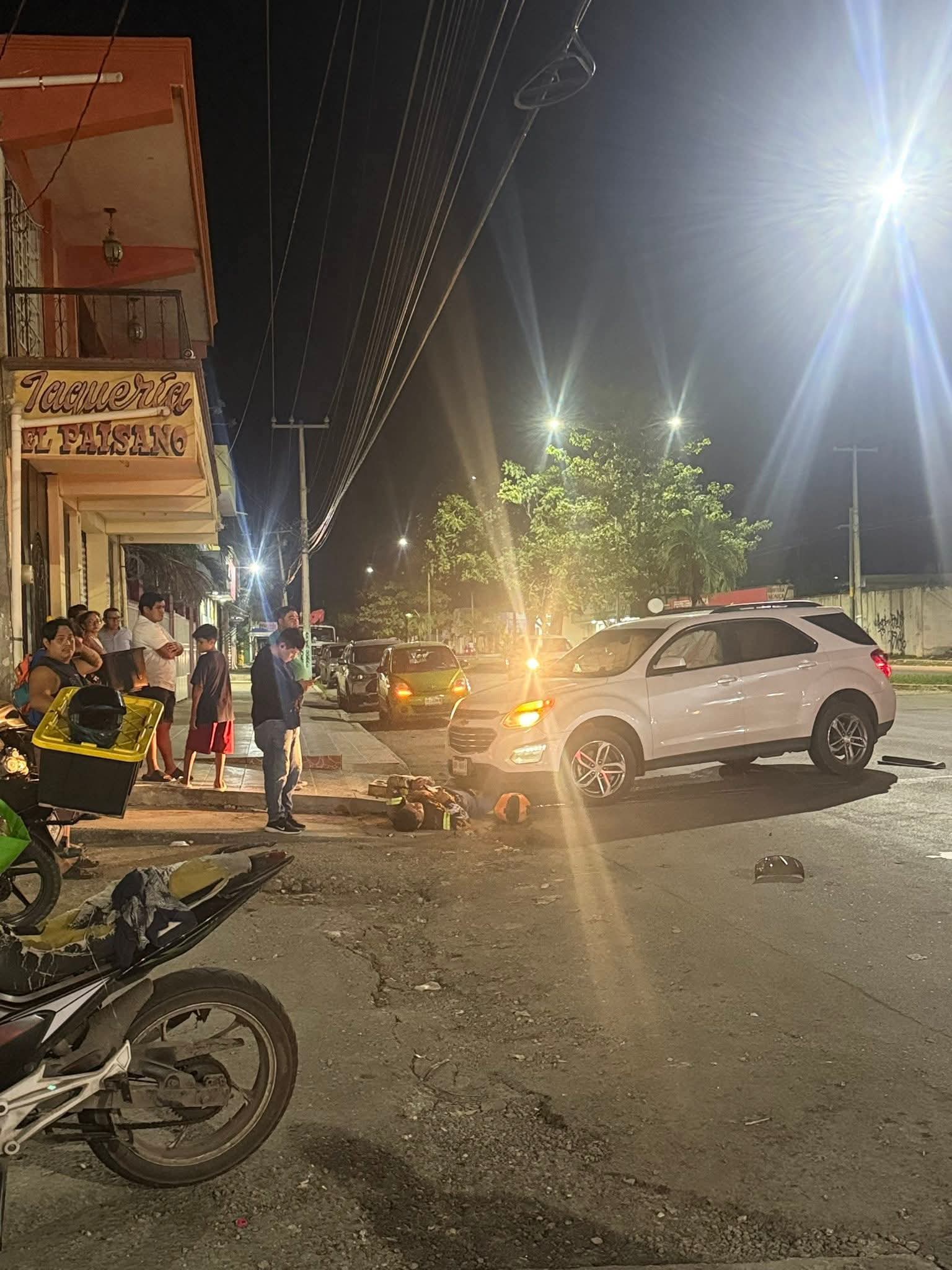 Chetumal (Marcrix Noticias)-  La madrugada de domingo, se registró un fuerte accidente en donde un motociclista casi pierde la vida al quedar bajo una camioneta.