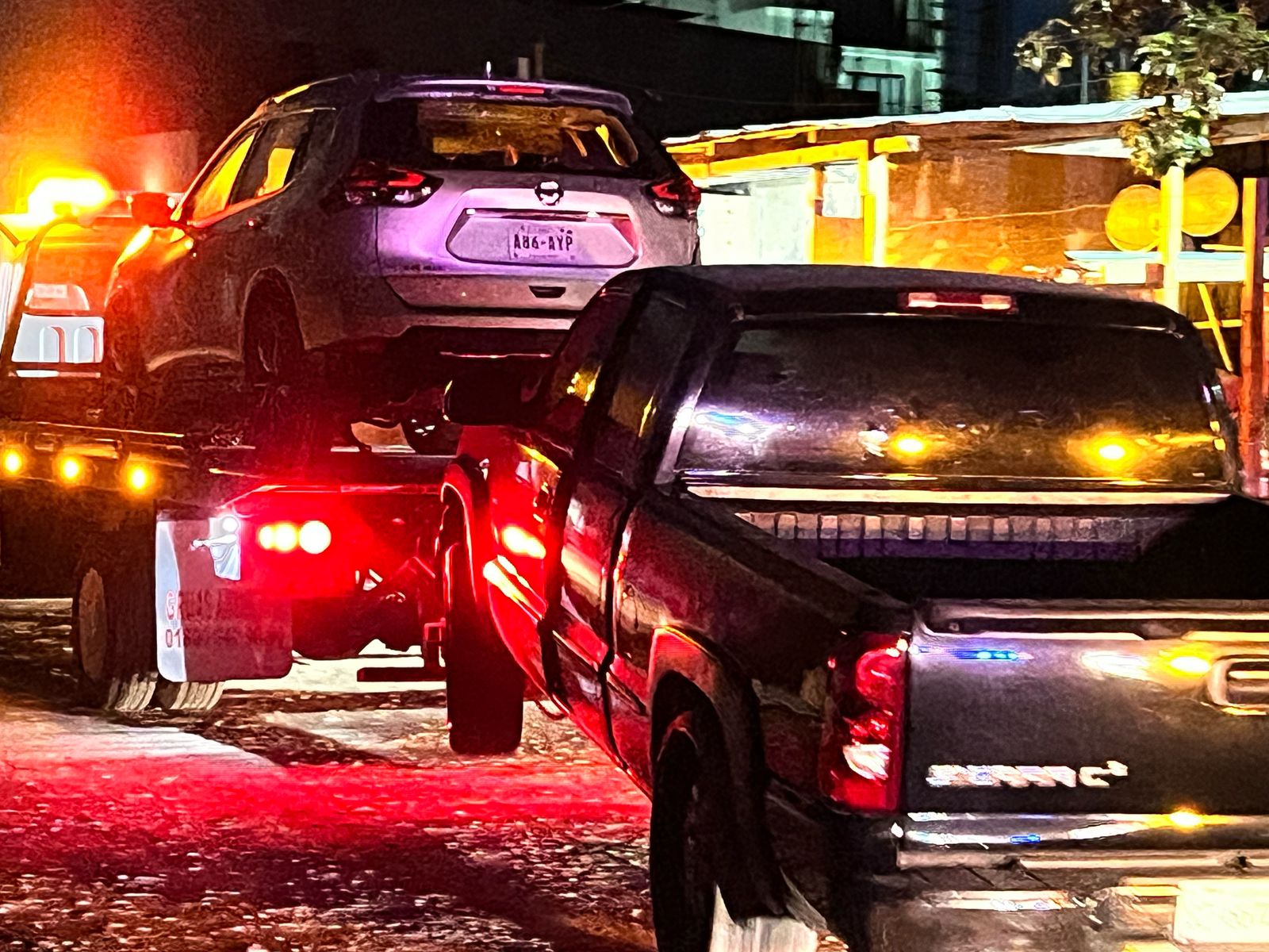 Dentro del domicilio de color blanco, las autoridades aseguraron dos vehículos, los cuales fueron llevados a las instalaciones de la Fiscalía a bordo de una grúa.