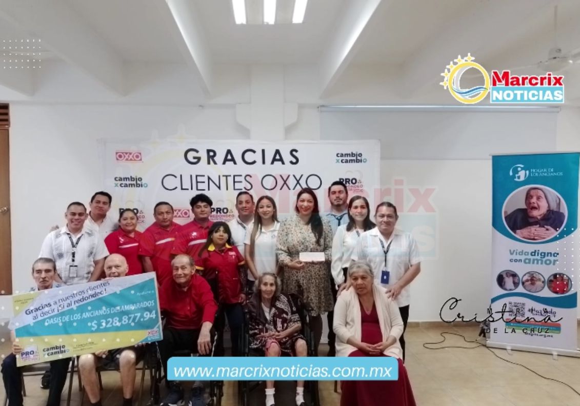 Cancún (Marcrix Noticias)- La casa-hogar El Oasis de los Ancianos Desamparados ,que forma parte de Ciudad de la Alegría, fue beneficiado con el último redondeo que la cadena de tiendas Oxxo entrega con recursos que los clientes redondearon en el último trimestre del año pasado.