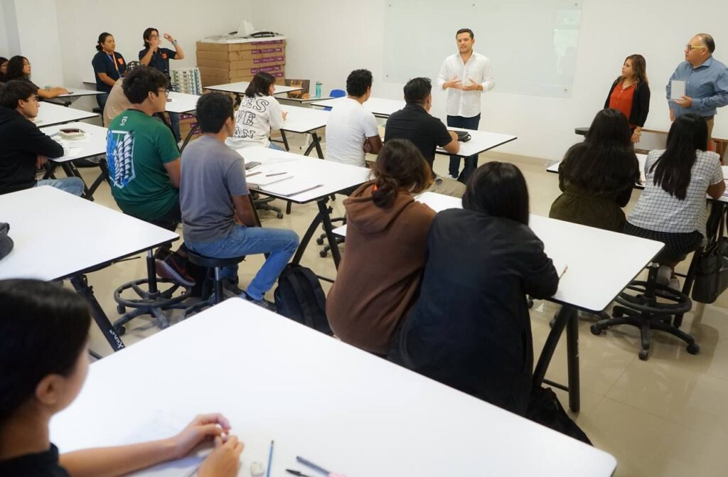 Cancún, Quintana Roo, (MARCRIX Noticias), 02 agosto 2023.– El Secretario de Bienestar, Pablo Bustamante Beltrán, visitó a las y los jóvenes del Grupo Tecnológico Universitario (GTU) Cancún, a quienes reiteró que su participación es un factor clave para la transformación de Quintana Roo que impulsa la Gobernadora Mara Lezama con el primer gobierno humanista en el estado.