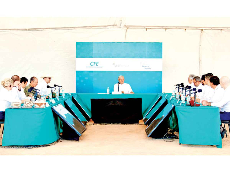 El presidente Andrés Manuel López Obrador atestiguó la formalización de la sociedad entre la Comisión Federal de Electricidad y la trasnacional México Pacific Limited para la construcción de un gasoducto y un planta de licuefacción de gas natural Saguaro Energía LNG en Puerto Libertad, municipio de Pitiquito en Sonora.