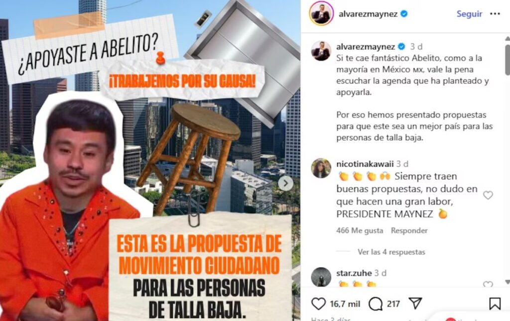 Máynez, excandidato presidencial por Movimiento Ciudadano, compartió en sus redes una propuesta para mejorar los espacios públicos y privados del país, buscando que sean más accesibles e inclusivos. En sus publicaciones, incluyó fotografías de Abelito, lo que generó diversas reacciones.