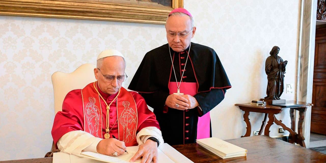 El pontífice firmó el texto en la biblioteca del Palacio Apostólico, acompañado por monseñor Edgar Peña Parra, sustituto de la Secretaría de Estado.