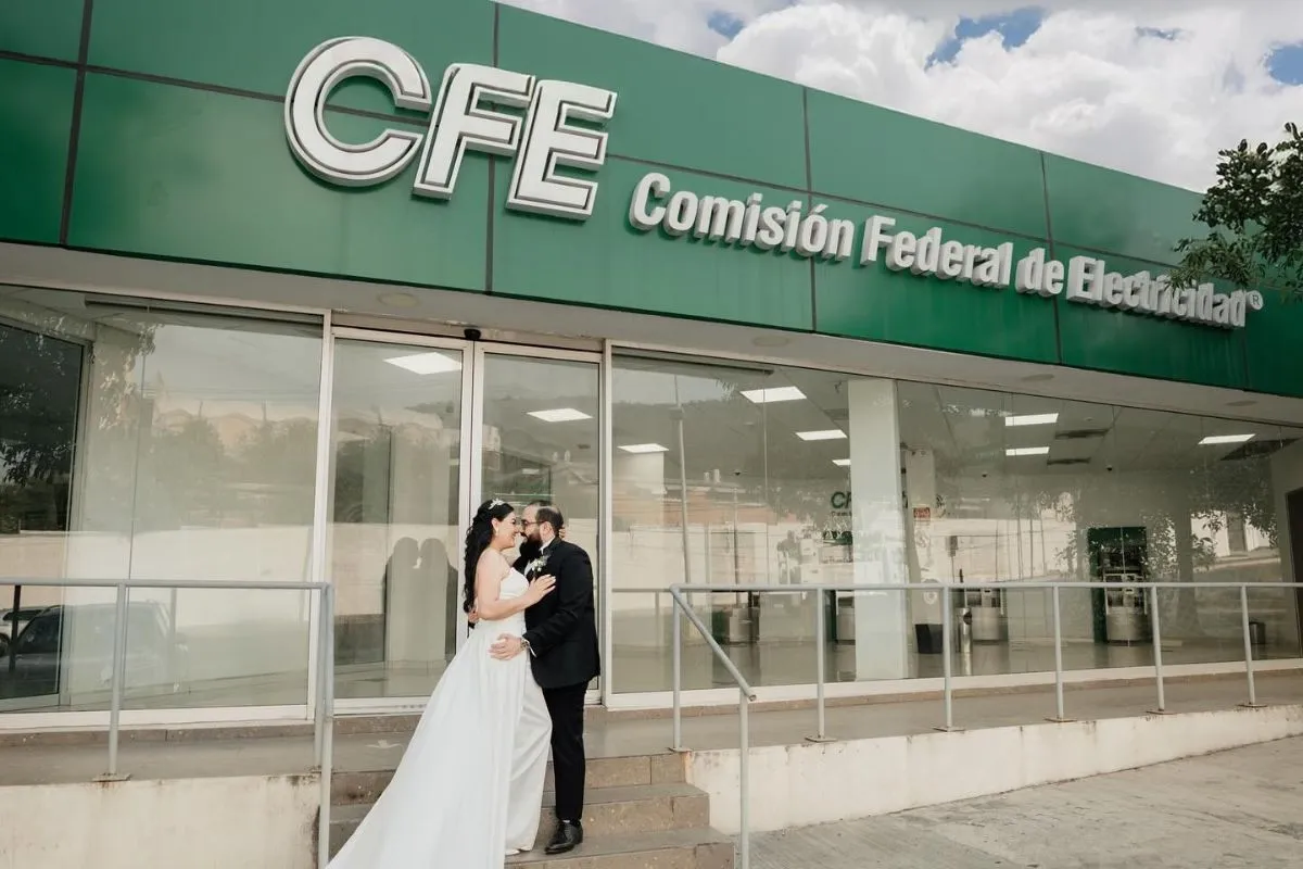 Monterrey (Marcrix Noticias)-En Monterrey, Lizbeth y Juan Manuel rompieron con las tradiciones al elegir una sucursal de la Comisión Federal de Electricidad (CFE) como locación para su sesión de fotos de boda.