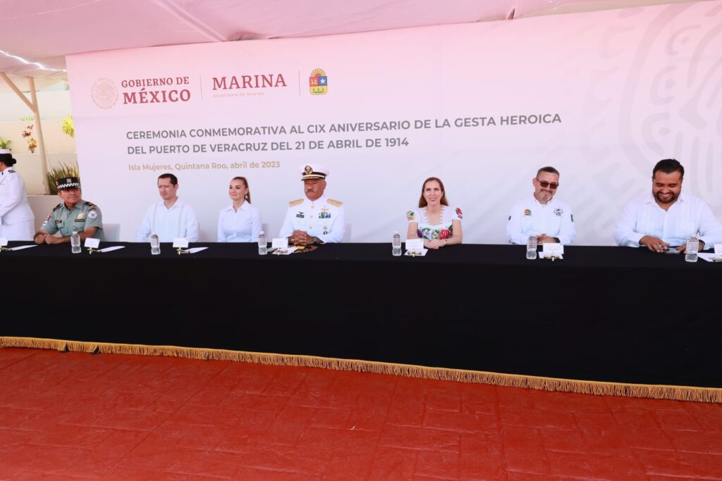 ISLA MUJERES, (MARCRIX Noticias), 21 DE ABRIL DE 2023.- La presidenta municipal Atenea Gómez Ricalde, asistió a la ceremonia conmemorativa por el 109 aniversario de la Gesta Heroica del Puerto de Veracruz del 21 de abril de 1914.
