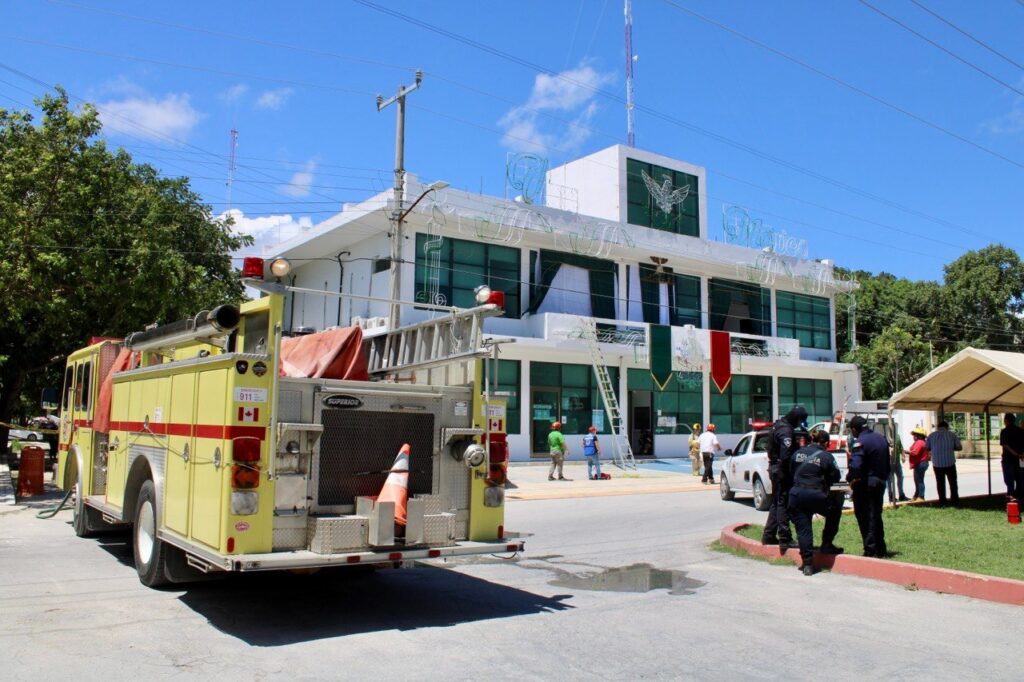 Puerto Morelos, Quintana Roo, 19 de septiembre de 2022.- Puerto Morelos participó hoy en el Día Nacional de Protección Civil, al organizar un simulacro en el Palacio Municipal, con la hipótesis de un incendio por el que fueron evacuados 55 trabajadores del ayuntamiento y 14 visitantes.