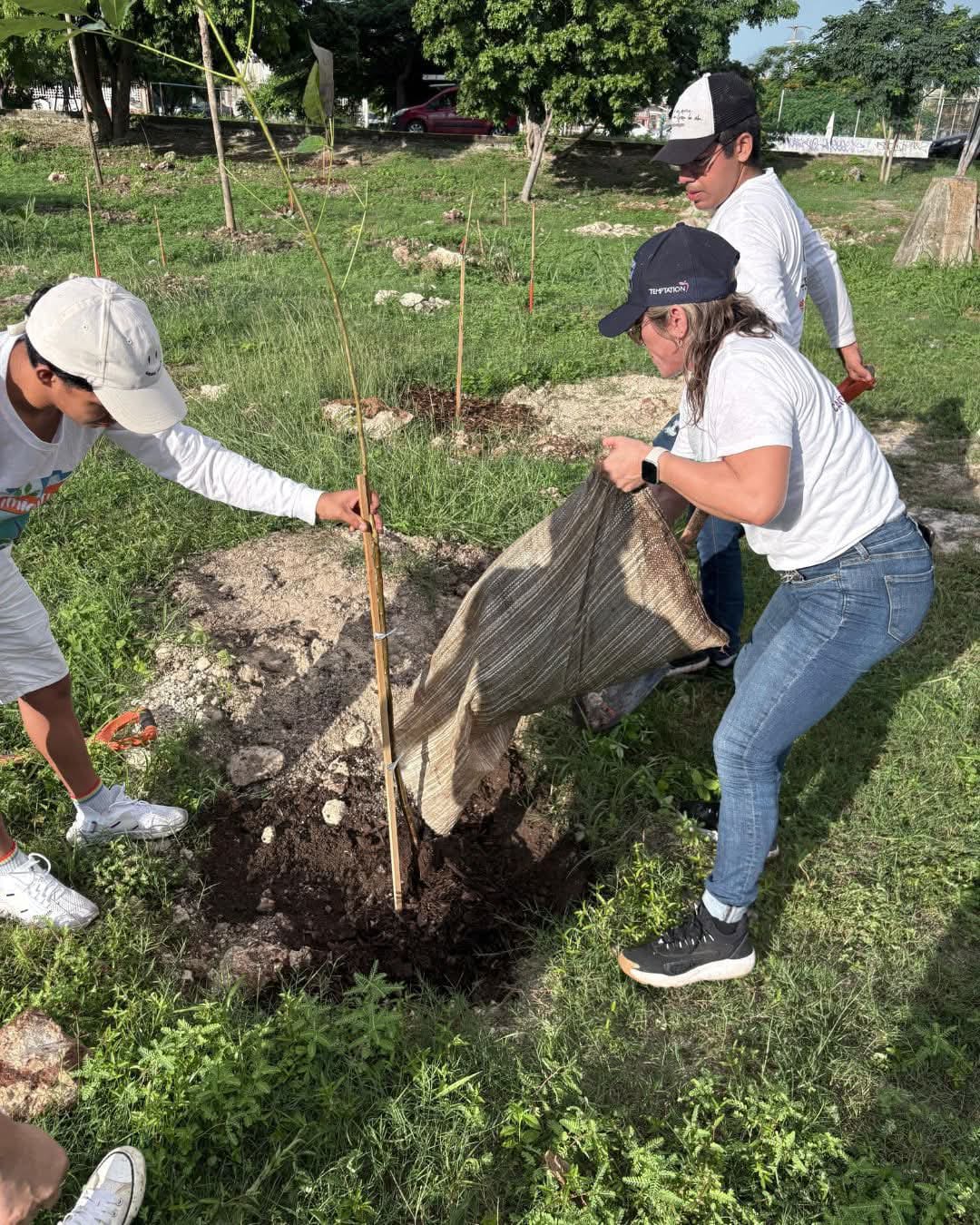 Los hoteles de Cancún; Iberostar Beachfront Resorts Cancún, Temptation Cancun Resort, Hyatt Zilara Cancun,Fundación Original y Fundación Palace, participaron en la jornada de Arbolización que lleva a cabo la Dirección de Ecología, que se realizó en la avenida Chac Mool esquina con la Talleres.