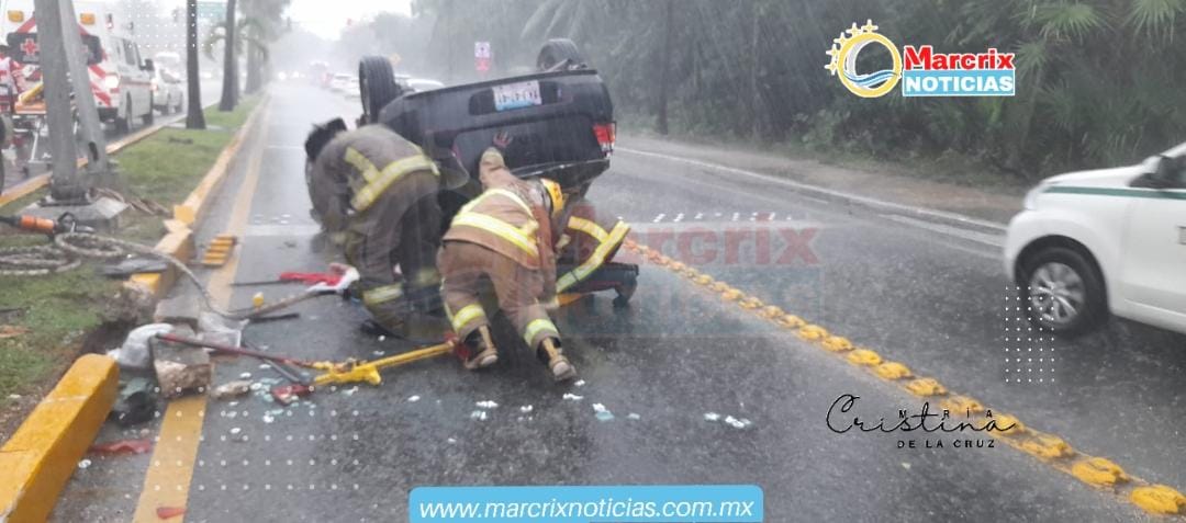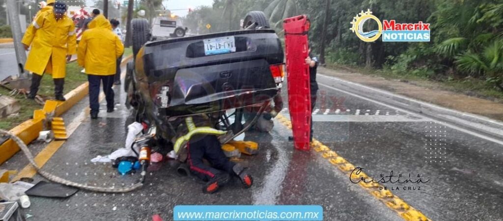 Cancún(Marcrix Noticias).- El exceso de velocidad cobró otra víctima en Cancún, pues durante esta lluviosa tarde de miércoles un pastor originario de Chiapas volcó a la altura del kilómetro 0 de la Zona Hotelera.