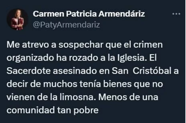 “Me atrevo a sospechar que el crimen organizado ha rozado a la Iglesia. El sacerdote asesinado, a decir de muchos, tenía bienes que no vienen de la limosna. Menos de una comunidad tan pobre”, escribió Armendáriz en su publicación inicial.