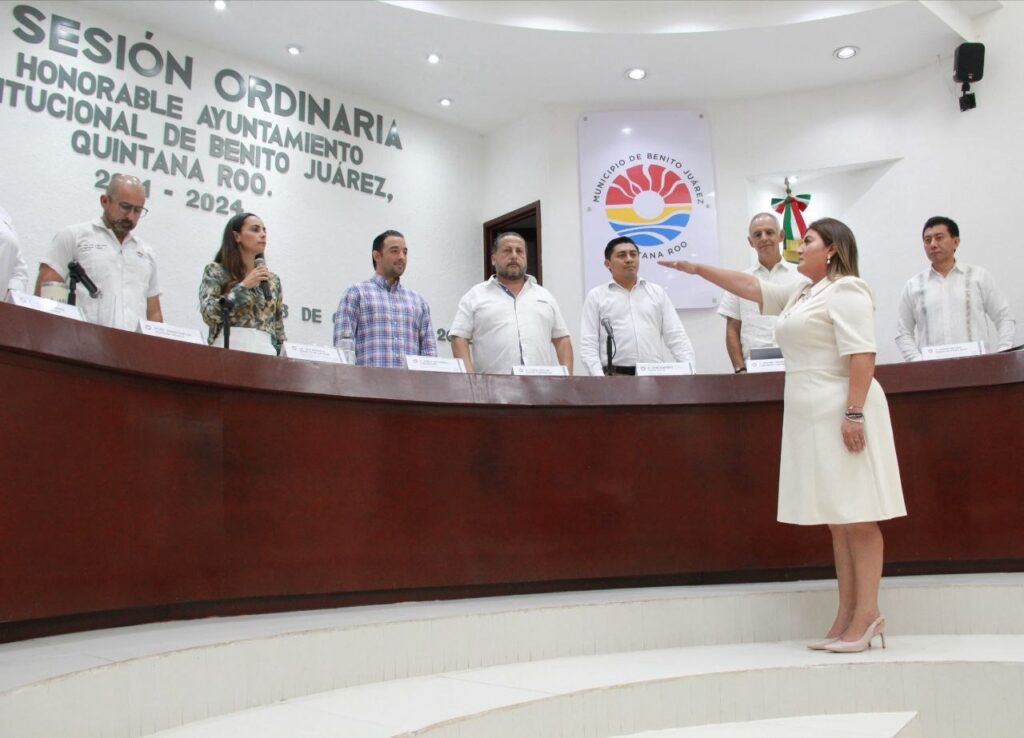 También, los regidores aceptaron de forma unánime ampliar y adecuar las funciones de la Comisión Ordinaria de Mejora Regulatoria, Transparencia, Protección de Datos Personales y Acceso a la información pública, para un mejor manejo y control del Archivo Municipal; la propuesta de Ana Saraí Pérez Sánchez, como directora general del Instituto Municipal de Desarrollo Administrativo e Innovación (IMDAI), quien rindió la protesta de ley en el recinto; y por último, para mayor análisis, que se turnara a comisiones unidas la expedición del Reglamento del Consejo Municipal para el Desarrollo y la Inclusión de las Personas con Discapacidad de Benito Juárez.