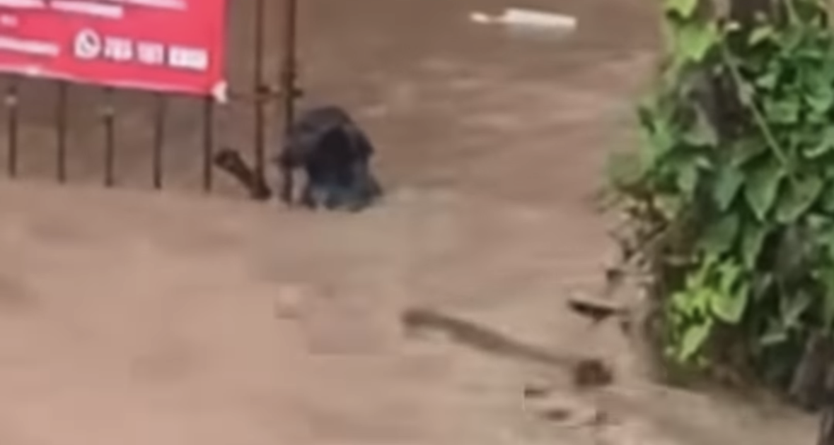 El hecho ocurrió durante recientes lluvias que generaron corrientes peligrosas en calles y zonas cercanas a ríos, poniendo en riesgo no solo a las personas sino también a los animales domésticos.