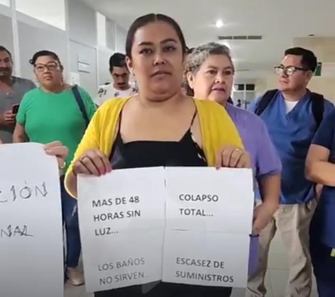 Chetumal (Marcrix, Noticias).- Trabajadores y personal médico de la clínica del ISSSTE en Chetumal protestan este sábado ante las severas condiciones laborales provocadas por la falta de energía eléctrica, que ya se extiende por más de 96 horas.