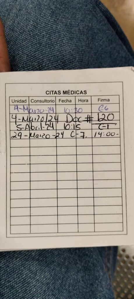 Otro caso que se suscitó fue con una paciente que desde hace un mes consiguió la cita médica, para que le entreguen sus estudios de Papanicolaou en el consultorio 7 igual a las 14:00 de este 29 de marzo, y simplemente el médico encargado se tomó el día como su descanso, sin mandar a un suplente.