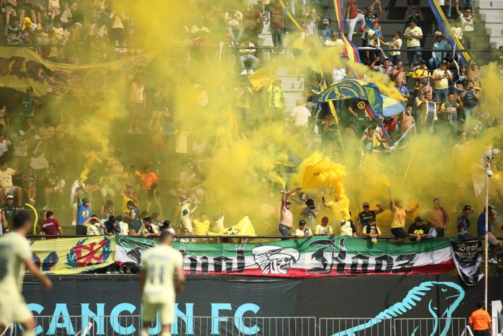 Cancún (Marcrix Noticias).— Las Águilas del América vencieron 2-0 al Cancún F.C. con goles de Diego Valdez y Jonathan Rodríguez, en juego amistoso que se realizó esta mañana en el estadio Andrés Quintana Roo con una asistencia superior a 5 mil personas, en su mayoría seguidoras de los de Coapa.