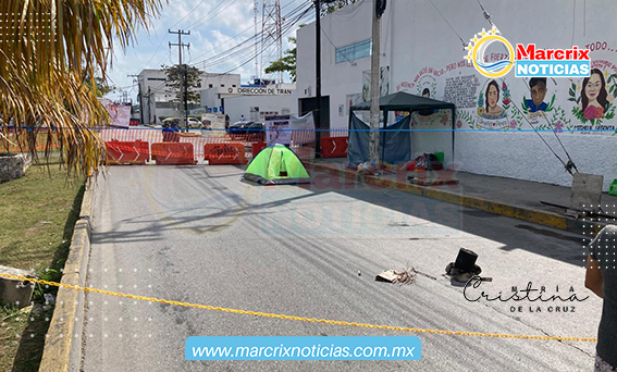 Madres buscadoras mantienen un plantón en la avenida Xcaret frente a la FGE de Cancún