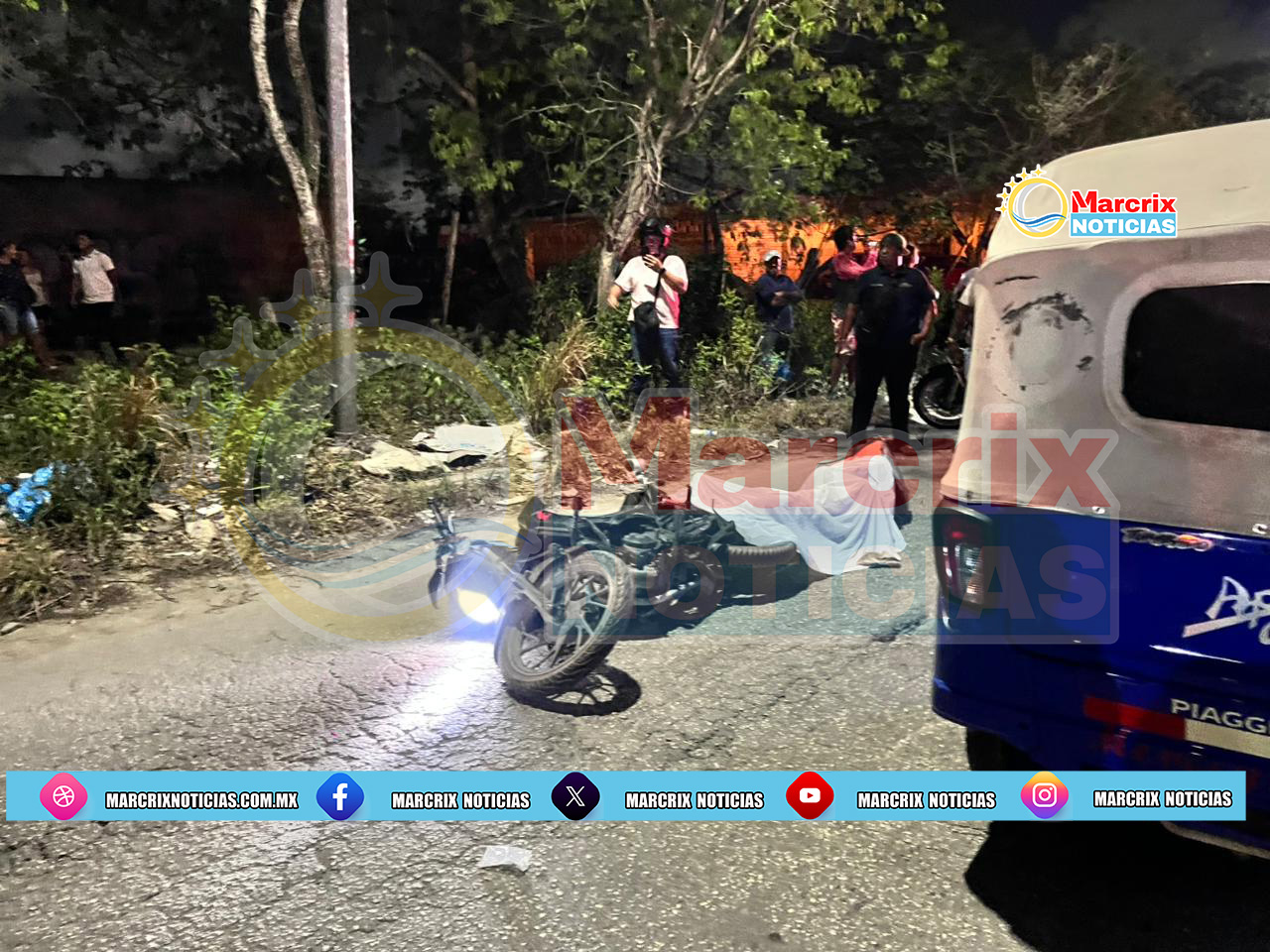 De acuerdo a testigos, el motociclista conducía a exceso de velocidad, perdió el control de la moto y se impactó contra un mototaxi azul con número económico 464.