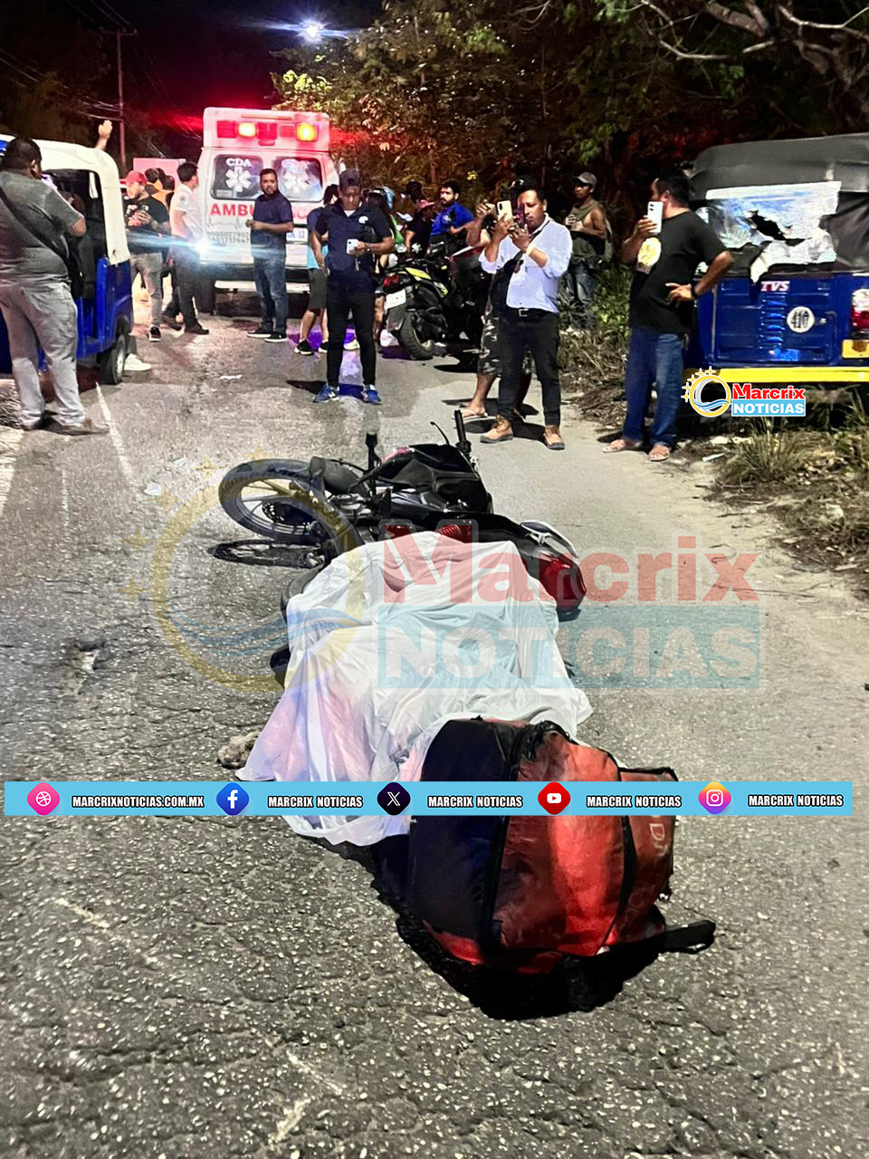 Cancún (Marcix Noticias).- Una trágica muerte sufrió un motociclista repartidor de DIDI Food sobre el Periférico de Cancún, a la altura del fraccionamiento Aloha.
