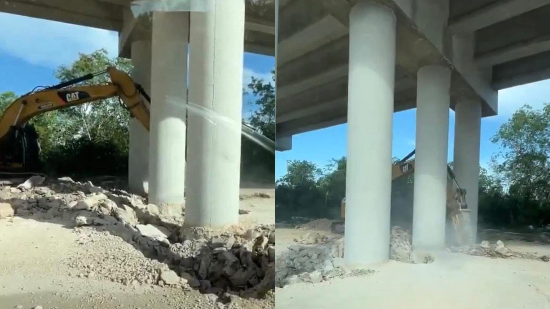 El deterioro en la estructura se registra en una zona kárstica cercana a Playa del Carmen, mientras surgen dudas sobre la seguridad y durabilidad del proyecto.