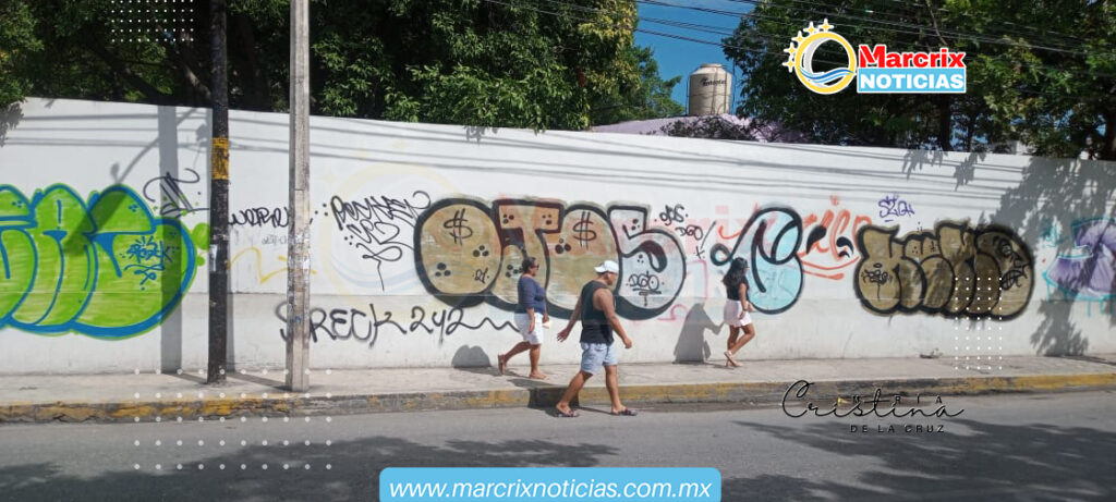 Cancún (Marcrix Noticias).- Graffiteros lo hicieron de nuevo y su arte callejero llegó hasta una barda del primer cuadro de Cancún, que se ubica en la avenida Tulum desde la esquina de la Chichen-Itzá hasta el edificio de la delegación del gobierno del estado, sin que ninguna autoridad haya hecho algo para evitarlo.