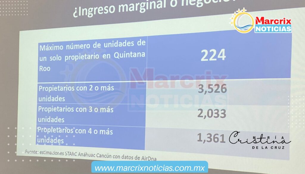 Explicaron que en Quintana Roo, “hay un solo propietario que tiene 224 viviendas y que se comercializan a través de esta plataforma a nivel nacional”.