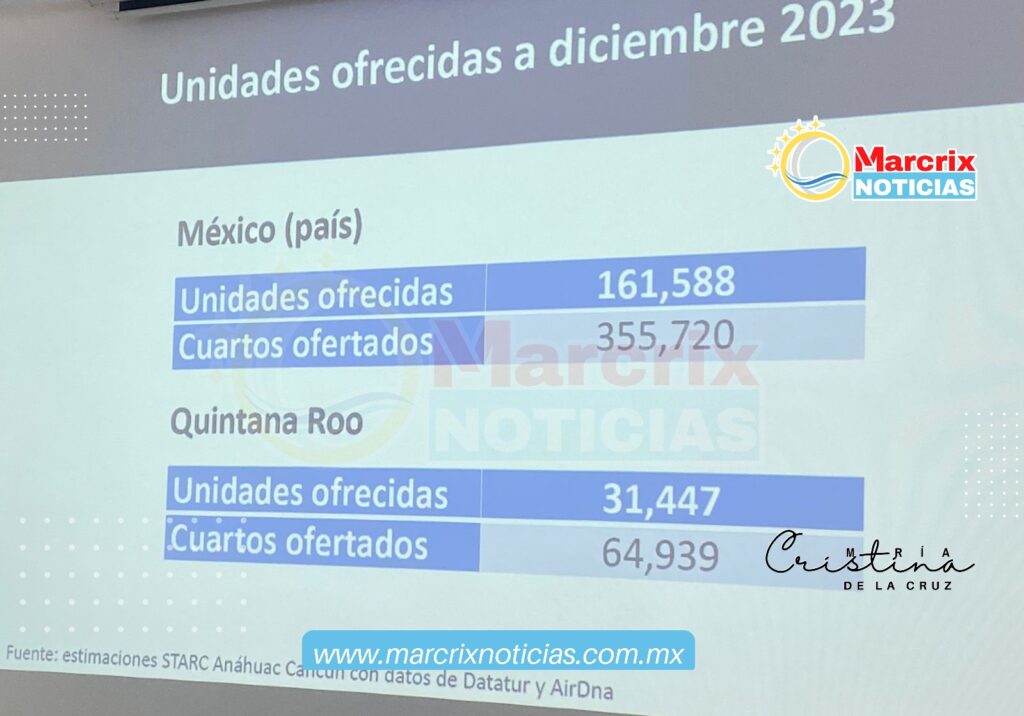 Detallaron que en México hay 161 mil 588 unidades ofrecidas en estas plataformas y cerca de 355 mil 720 cuartos, de este total, 31 mil 447 viviendas son ofertadas en Quintana Roo y 64 mil 939 cuartos pertenecen a este estado.