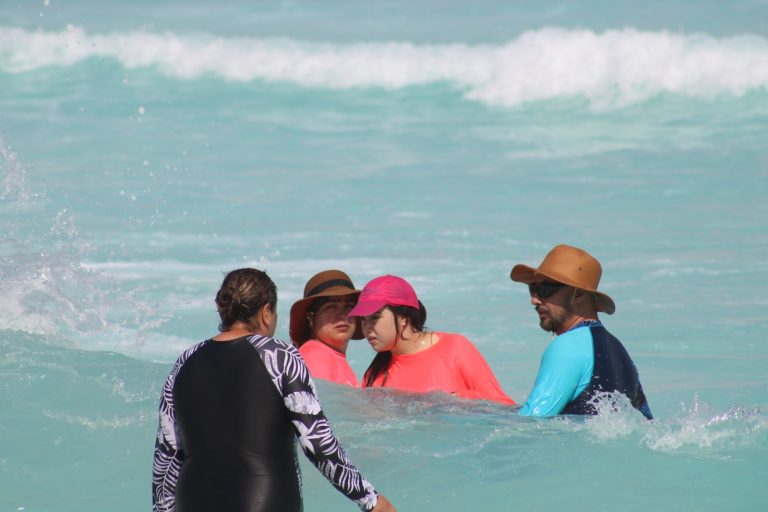 Cancún (Marcrix Noticias) — Las playas de Cancún registran una gran afluencia de visitantes durante este periodo vacacional, gracias a las condiciones climáticas favorables que han motivado a familias enteras a disfrutar del mar, las blancas arenas y el sol caribeño.