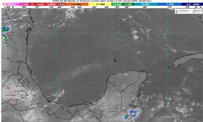 1.- Se mantiene una Vaguada débil (Canal de Baja Presión) localizada en superficie sobre la porción occidental de la Península de Yucatán, en su amplia circulación impulsa aire marítimo tropical con variable contenido de humedad desde el Golfo de México y del mar Caribe hacia la región peninsular, originaran temperaturas calurosas a bochornosas durante el día y frescas por la madrugada, cielo medio nublado con incremento de nublados, lluvias o lloviznas dispersas con chubascos ocasionales durante el transcurso del día o noche sobre algunas zonas del estado