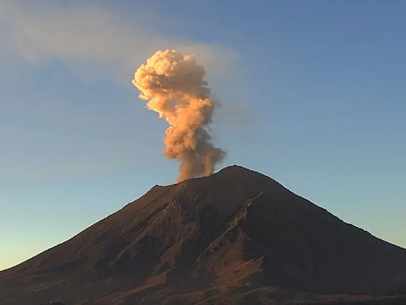 Desde esta mañana y hasta el momento, el volcán Popocatépetl presenta una emisión constante de vapor de agua y gases volcánicos que se dispersa hacia el norte-noroeste.