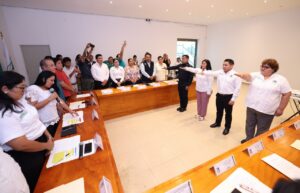 La alcaldesa tomó la protesta a los nuevos miembros de SIPINNA Puerto Morelos, Tte. Manuel Alejandro Nava García, Secretario de Seguridad Ciudadana; Juana María Chacón Canché presidenta Honoraria del DIF Municipal; Lucely Benítez Arzápalo delegada de Leona Vicario y el Tesorero Municipal José Luis Ciau Xiu.