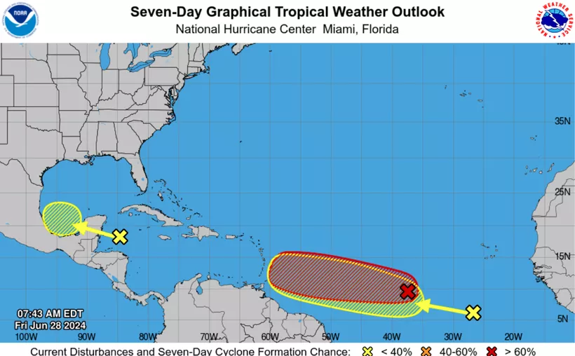 Además, el Instituto Nacional de Oceanografía y Atmosférica (NOAA) informó sobre una baja probabilidad de formación de una depresión tropical en el suroeste del Golfo de México y el Atlántico tropical.