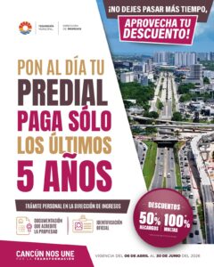 El Ayuntamiento de Cancún invita a los contribuyentes a ponerse al día con su impuesto predial bajo un esquema de prescripción que reduce los adeudos históricos y facilita la regularización del patrimonio.