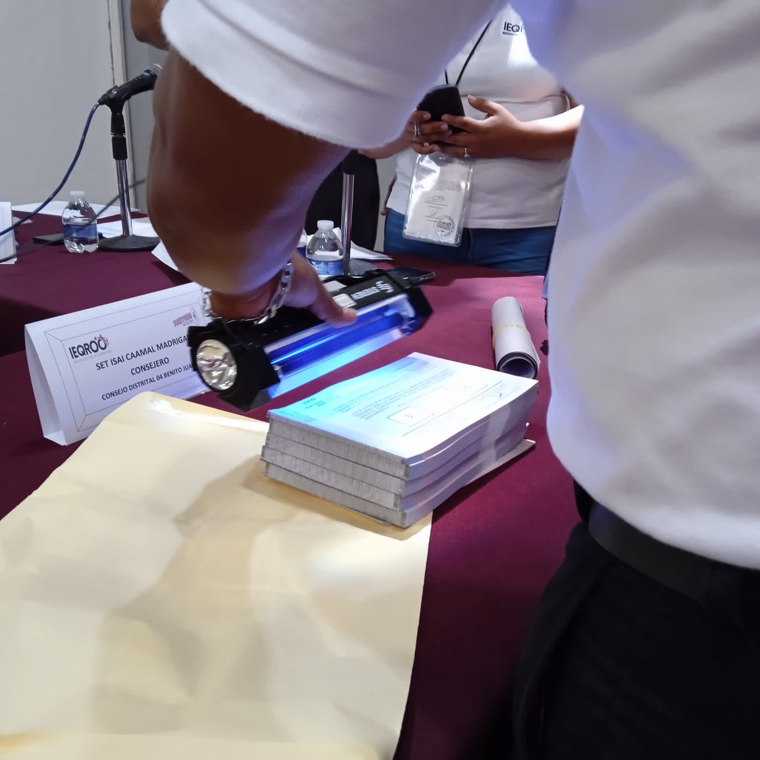 Chetumal (Marcrix Noticias).- En Sesiones de los 15 Consejos Distritales del IEQROO se llevó a cabo el procedimiento de verificación de las medidas de seguridad de boletas, actas y liquido indeleble correspondientes a las elecciones de gubernatura, diputaciones, así como la verificación de las boletas para la Consulta Popular, las medidas de seguridad que son sometidas a la observación y revisión de las y los integrantes de los Consejos Distritales son:
