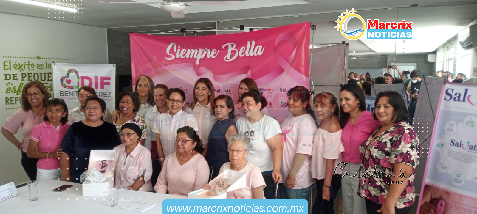 Cancún (Marcrix Noticias).- La presidenta del DIF de Benito Juárez (Cancún), Doris Marisol Sendo Rodríguez, Guadalupe Jiménez Topete, directora de Valor Humano de The Dolphin Company y Lilian Alarcón E Ito, presidenta de la Fundación Salvati, presentaron la campaña “Siempre Bella”, que tiene como objetivo reunir recursos económicos para donar prótesis mamarias a mujeres diagnosticadas con cáncer de mama, y que se les haya realizado mastectomía y retirado uno o ambos senos.