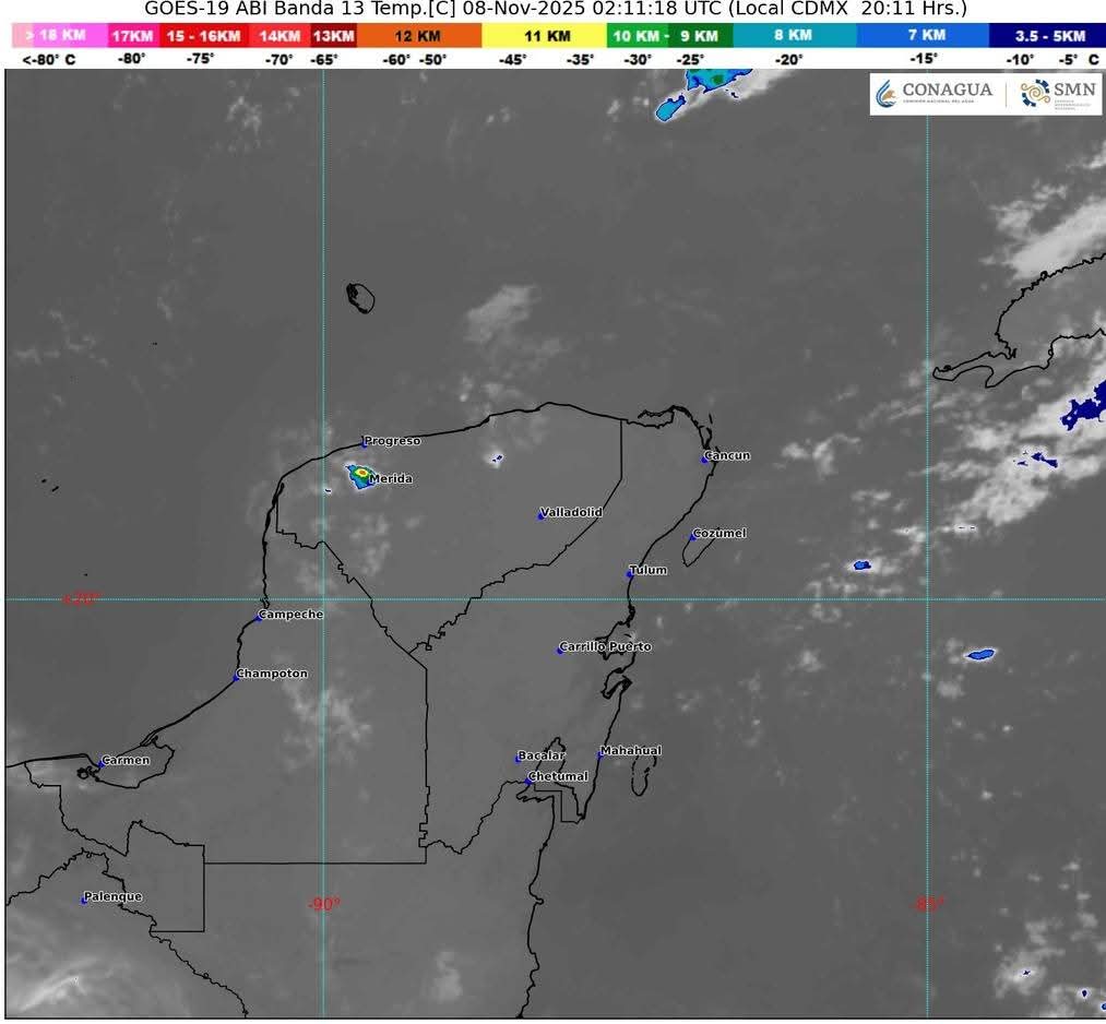 El organismo detalló que para la Península de Yucatán se prevé probabilidad de lluvias con descargas eléctricas en los estados de Campeche, Yucatán y Quintana Roo durante el día.