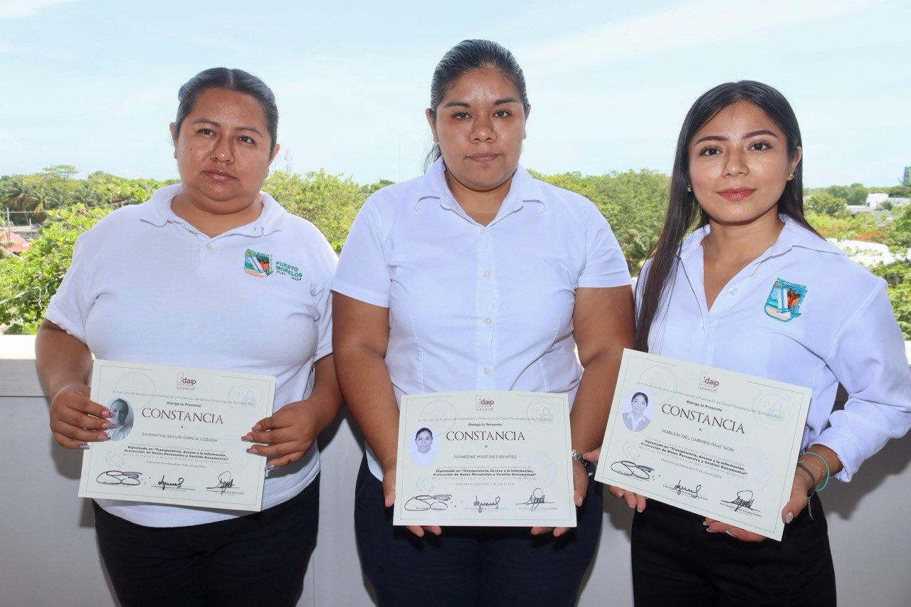La funcionaria indicó que el diplomado, impartido por el Instituto de Acceso a la Información y Protección de Datos Personales de Quintana Roo (IDAIPQROO) y que tuvo una duración total de 96 horas, permitió actualizar al personal en temas torales relacionados con la rendición de cuentas. Los participantes recibieron sus respectivas constancias al término.