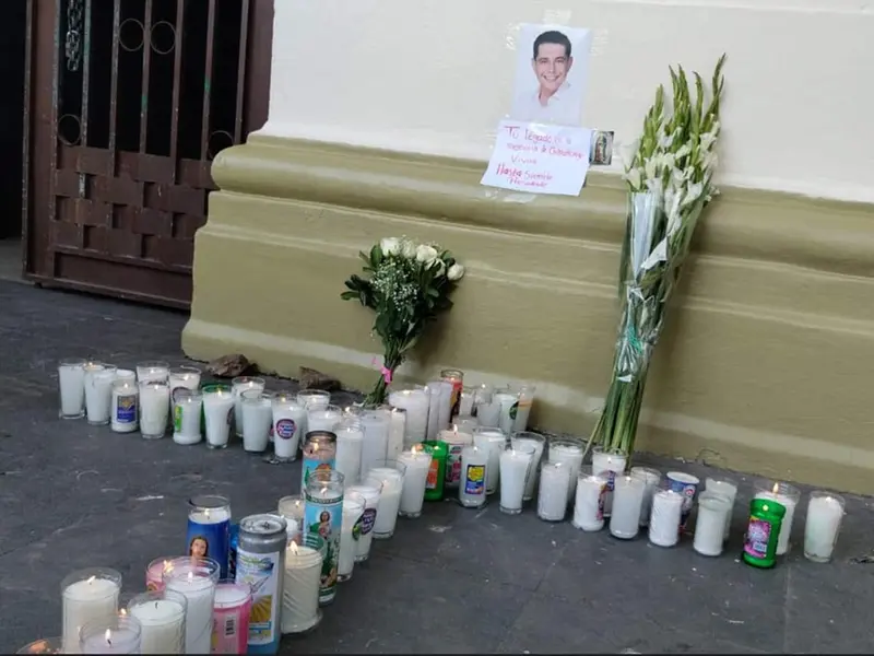 La mañana de este lunes, ciudadanos y trabajadores del Ayuntamiento de Chilpancingo colocaron veladoras y flores en la entrada del inmueble en memoria del Presidente municipal Alejandro Arcos Catalán.