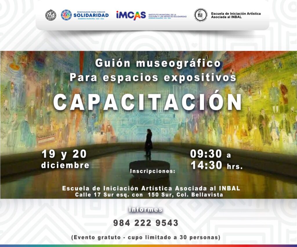 Este evento, programado para los días 19 y 20 de diciembre de 9:30 a 14:30 horas, es gratuito y está dirigido al público en general, por lo que quienes se interesen podrán inscribirse en las instalaciones de la Escuela de Iniciación Artística Asociada al INBAL, ubicada en calle 17 Sur esquina con 150 Sur, colonia Bellavista. Además, podrá solicitar informes al 984 222 95 43.