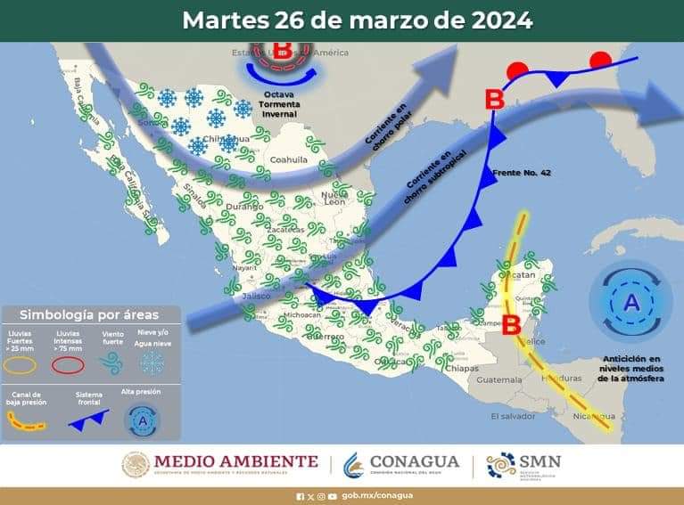 Indican que se registrarán rachas de viento del Sureste de 40 a 60 km/h, perdiendo intensidad por la tarde del día miércoles 27 de marzo.