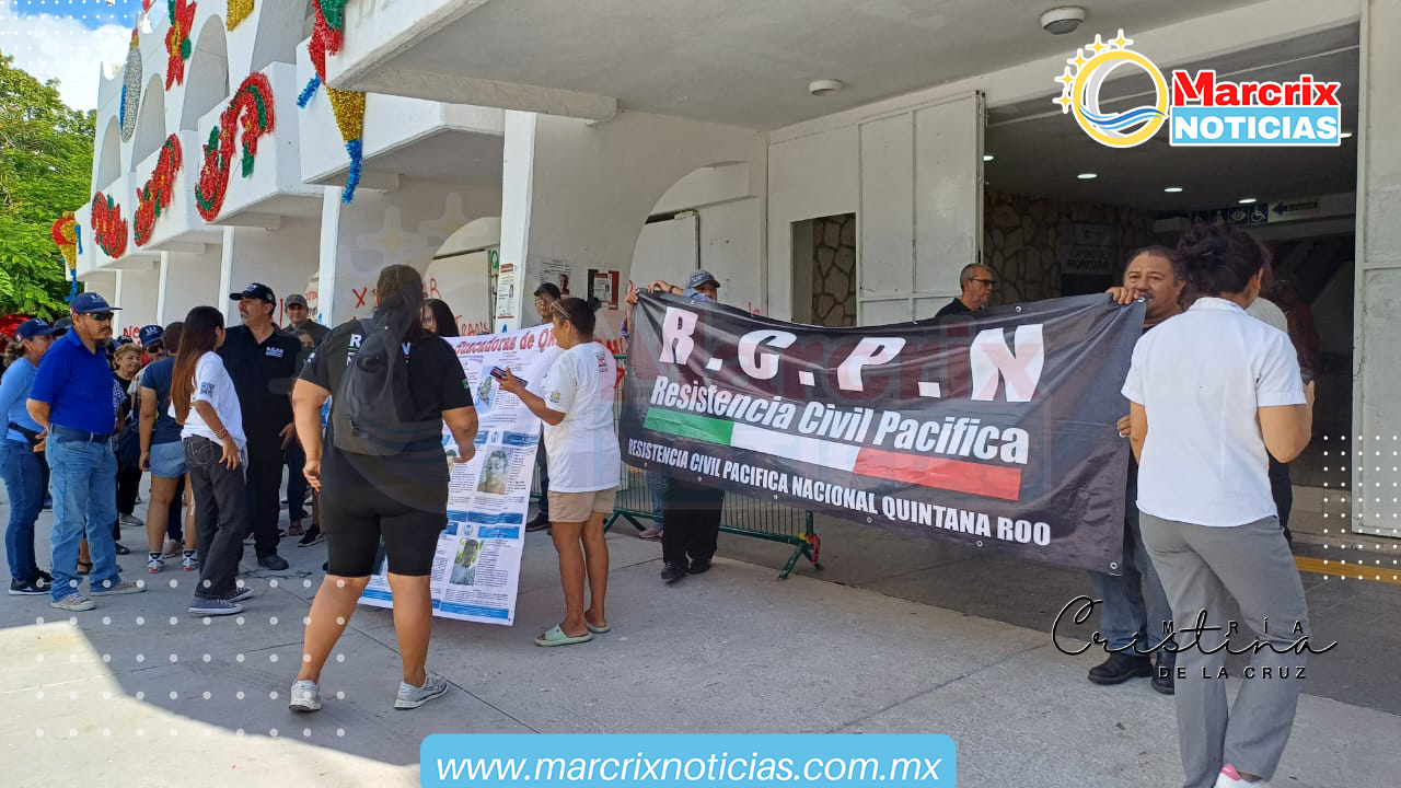 Cancún (Marcrix Noticias).- Un grupo de aproximadamente 100 personas se manifestaron hoy frente a Palacio Municipal para exigir a las autoridades municipales su intervención ante el desalojo de varias viviendas por presuntos adeudos del impuesto predial y los cobros excesivos de Aguakán por el servicio que afecta a decenas de familias de la ciudad.