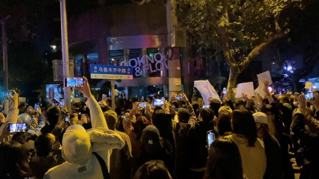 En un momento de la noche, un grupo de personas llegó a gritar “Abajo el Partido Comunista, abajo Xi Jinping”, una poco habitual muestra pública de desaprobación sobre las políticas del líder del país.