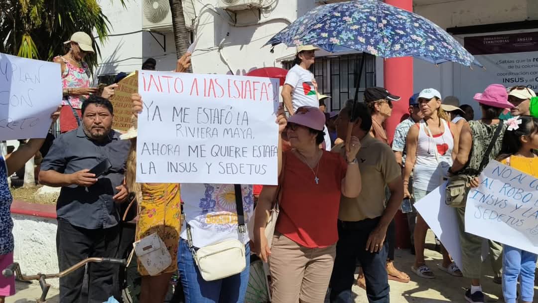 La manifestación comenzó en la intersección de las avenidas Colosio y 30, y culminó frente a las oficinas del INSUS en la colonia Zazil-Ha, donde los colonos entregaron un pliego petitorio y solicitaron una mesa de diálogo urgente con representantes de la dependencia federal.