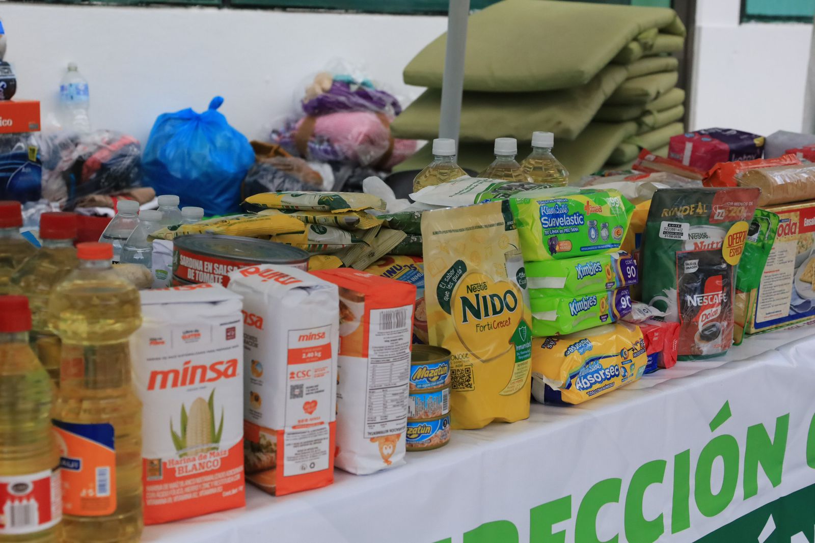 Los artículos prioritarios incluyen agua embotellada, alimentos no perecederos y enlatados, fórmula láctea para bebés, productos de higiene personal, pañales, toallas sanitarias, artículos de limpieza del hogar, así como ropa y calzado en buen estado y limpios.